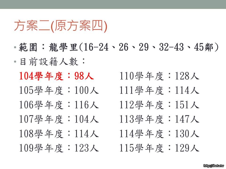 基本學區 龍學里16-24 、 26 、 29 、32-43、45 鄰 98人