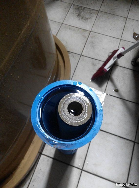 在完成後端水路之後,最後再關閉主水路,進行切管! 此時可以先鋸開一小孔使用 漏斗 + 水管 把水先接下來,避免搞的水四處都是!