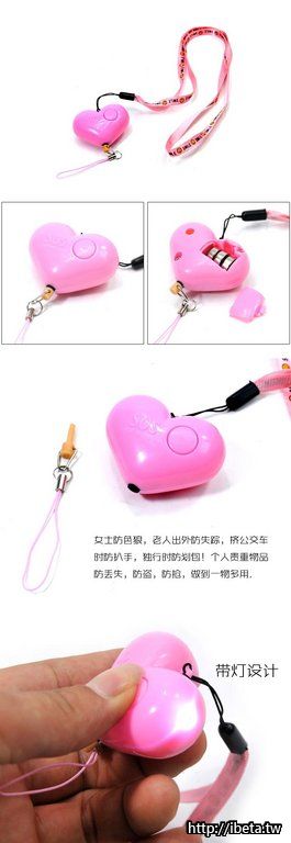 1.是一個非常漂亮的裝飾物,是每一個女孩子的貼身保鏢。 女同學天黑獨行,如遇可疑人靠近,可以拉出插銷,嚇阻可疑人,打消其作惡之念。