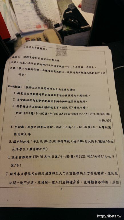 我不贊成,社區的設備本來就應該是住戶"專用"才對,對外開放營業,不就成了風呂休閒俱樂部,提議的細項還食育樂全包了,相信附近的社區應該沒有有這樣做的。
