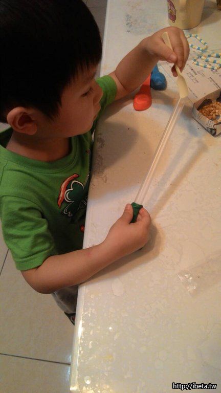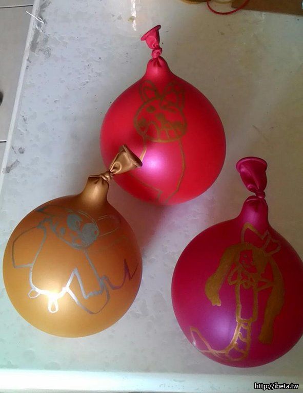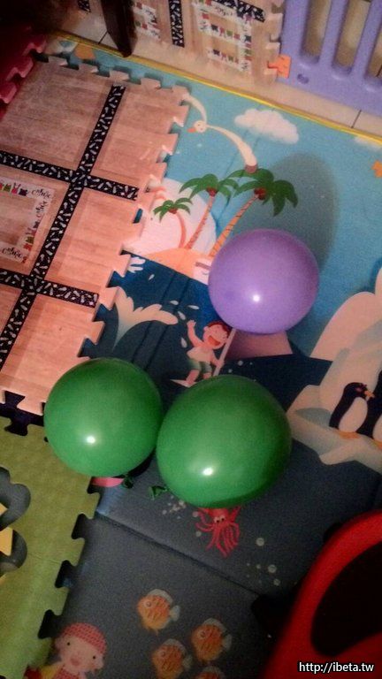 3歲的兒子很認真的自己做自己的氣球炸彈呢^V^