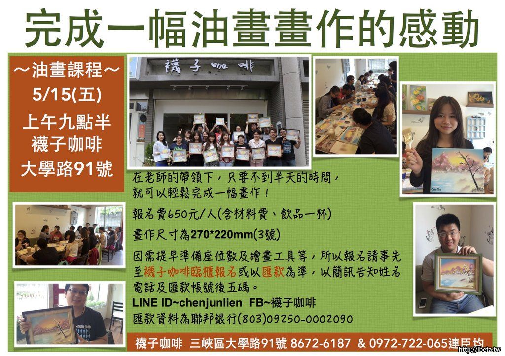 因需提早安排座位數及繪畫工具等,所以報名請事先至襪子咖啡臨櫃報名或以匯款為準,
