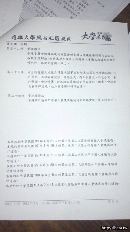 未經區大決議擅自修改社區規約,請出席周五晚管委會