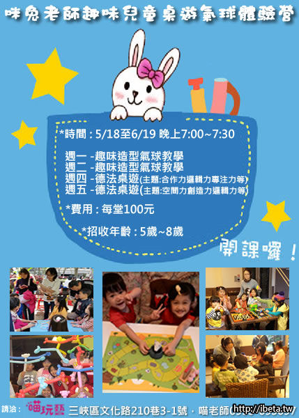 喵玩藝~趣味兒童桌遊與造型氣球教學百元體驗營