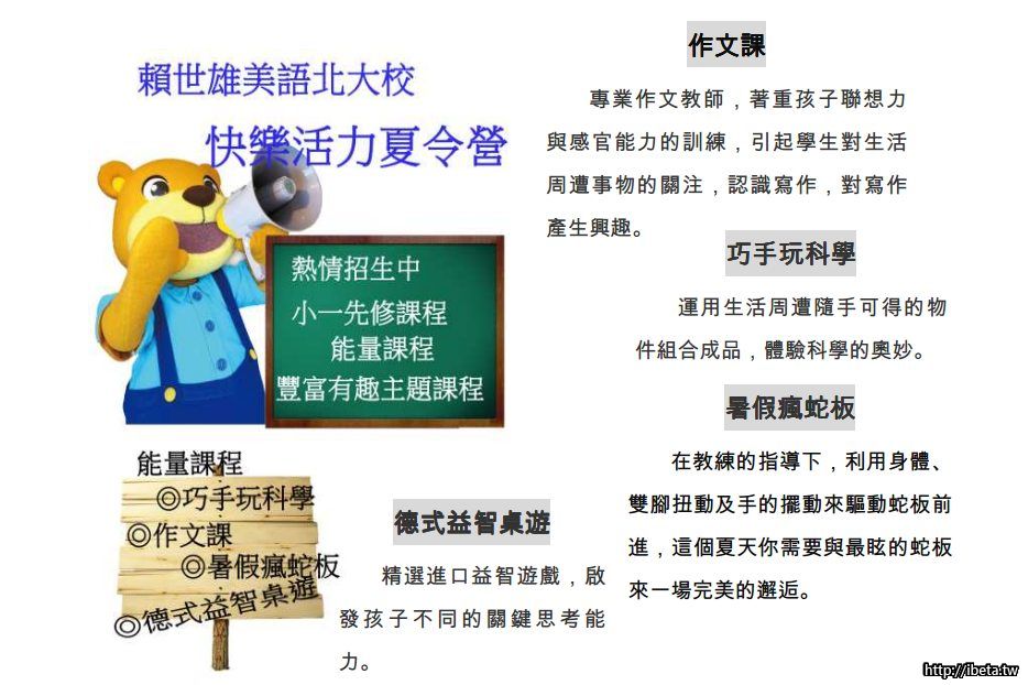 2015 賴世雄美語北大校 快樂活力夏令營 熊趣味、熊好玩、熊快樂 的主題課程
