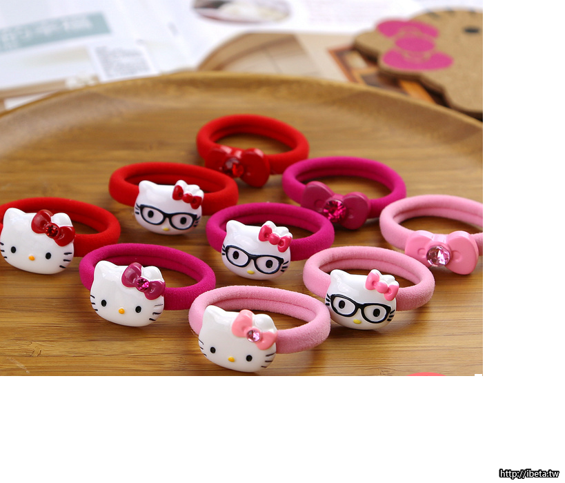 (6)KITTY頭+蝴蝶結款髮圈 顏色:粉色/玫瑰紅/紅色*可挑款*一對