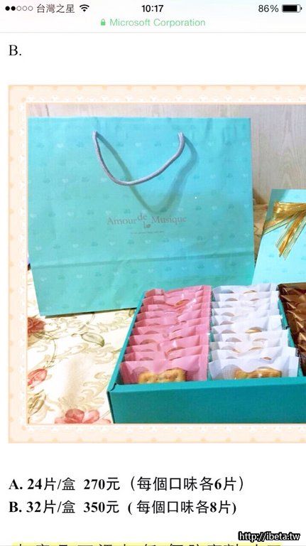 4.精美禮盒32片裝,每個口味各8片,350元。