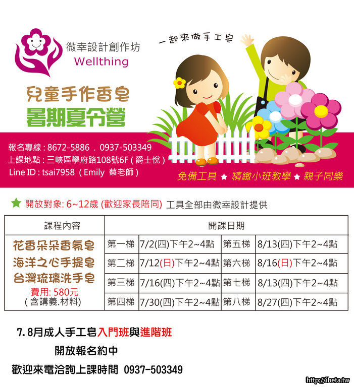 還沒來得及參加暑期兒童手工皂的媽咪及寶貝們:以下還有名額喔!