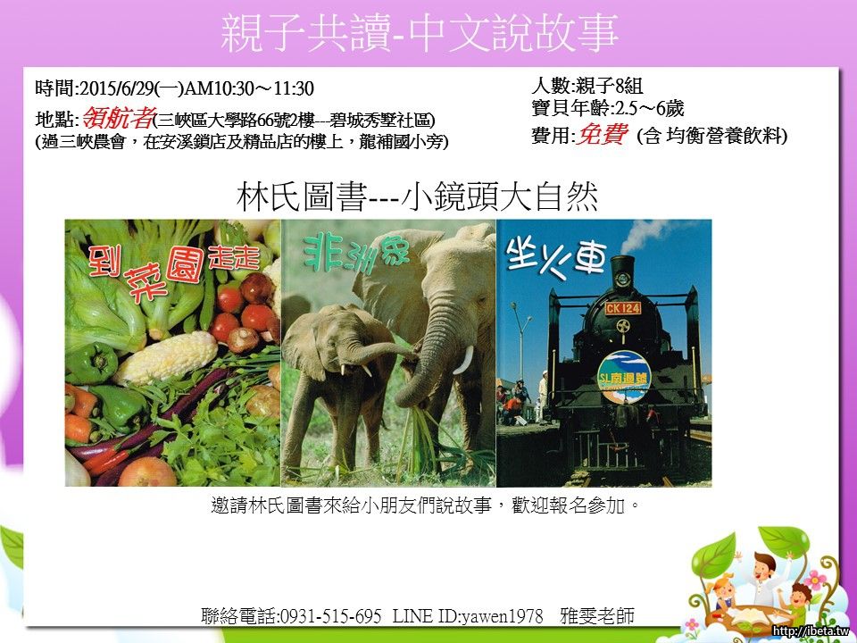 林氏圖書的小鏡頭大自然,很棒的一套書,希望分享給更多的小朋友,邀請林氏圖書來說故事,歡迎報名參加。