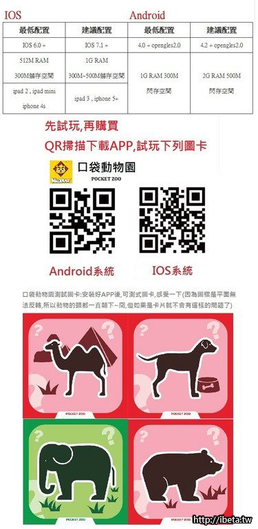 補充:基本上大部分的手機、平版都可以正常執行,賣場下方有提供QR掃描及測試卡片,欲購買者可先自行先安裝APP感受~也可於youtube搜尋"小熊尼奧"相關影片,若在執行上有任何疑問歡迎詢問.
