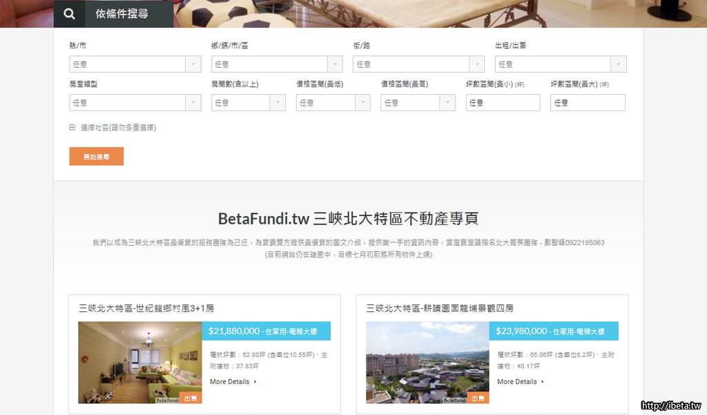 想跟大家介紹一個我自己做的售屋網站http://BetaFundi.tw/