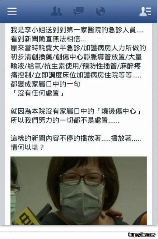 看到這個新聞真的令人十分難過,因為恩主公醫院並沒有燒燙傷中心,但卻收了許多重傷患者,所收的6名傷患中就有3名是重傷,目前仍有2位重傷患者在恩主公醫院搶救,而這起事件卻沒有任何傷患送往台北長庚和桃園長庚分院,讓我覺得很奇怪,不知是什麼原因。