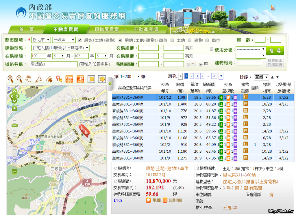 點開591房屋交易網,可見三峽北大特區出現倒貨潮,單一建案待售物件超過30間的就有12案,其中最大量是「皇翔玉鼎」,同一時間有81件物件待售,佔該社區總戶數約1成5以上,其中雖有重複刊登的物件,但有房仲私下透露,此案委售量其實逼近百戶,比網路數據更驚人。