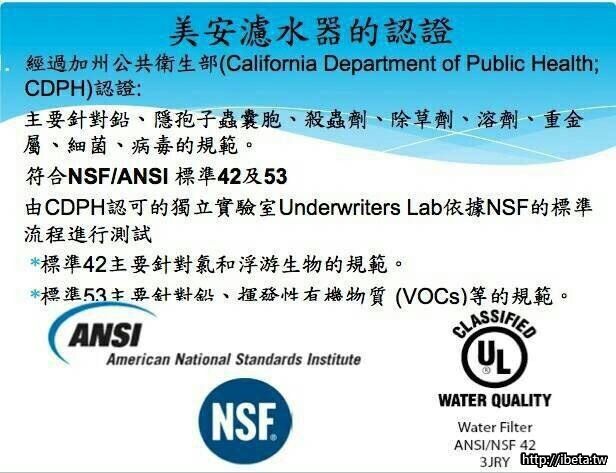 美國原裝進口,通過最嚴格的加州濾水標準,及美國國家衛生院NSF42丶53標準。