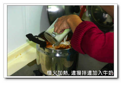 3.全部放進去,小火煮滾...一定要攪拌,底部才不會焦...