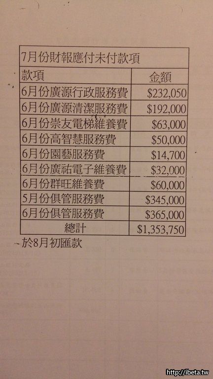 1. 應付未付款項行政服務費與清潔服務費有誤,可參考財報那頁,是正確的