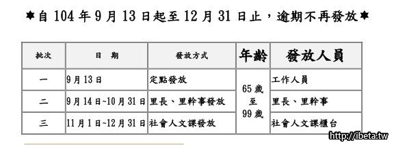 各區(里)發放方式不太一樣,請提醒家中長輩領取禮金時要注意一下相關資訊!