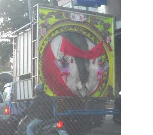 話說這隻豬不就是一早在我們家大樓底下放鞭炮吵的全家都起床的那隻(特等神豬)嗎...