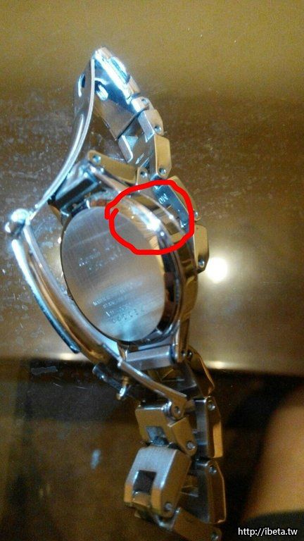 後記:當夜,以40X珠寶鑑視鏡、#1500號砂紙、拋光膏、羊毛氈、二萬轉電磨,將“那個洞”週遭的鑿痕、毛邊處理到『粗視無感』的程度。但凹陷的洞是無法彌補了,說明書上號稱三個大氣壓的防水性能也應是破功了!