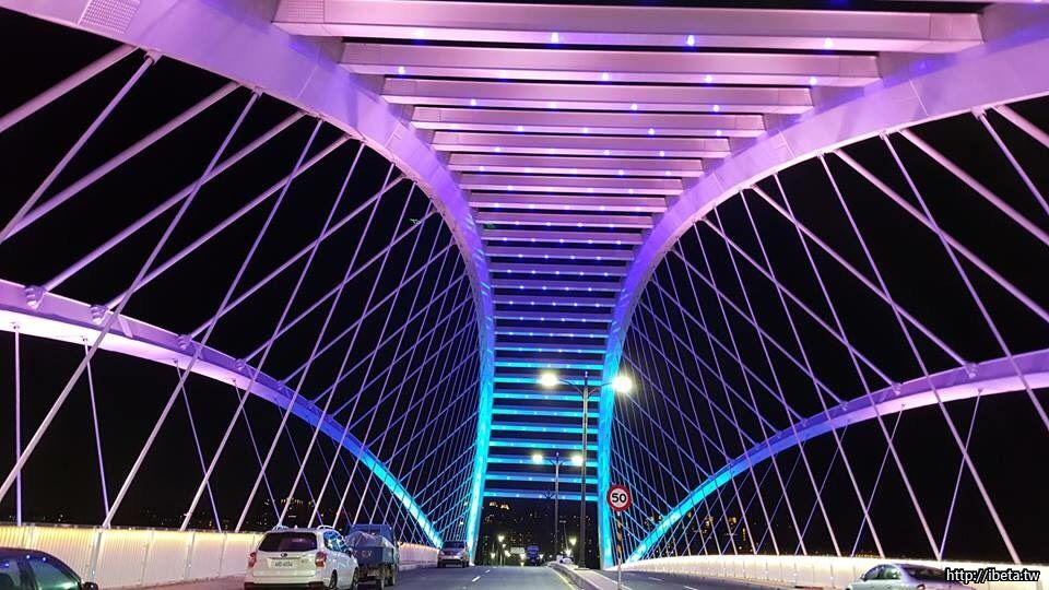 新工處長詹榮鋒說,台北大學特定區聯外道路西起三樹路與大學路口,往東延伸跨越三峽河,經佳興路後與台 3 線 ( 介壽路 ) 銜接,寬度 30 公尺,全長 1.457 公里,而此次工程最大特色就是新建一座橫跨三峽河的三角湧大橋,此座鋼拱橋寬 30 公尺,長 180 公尺,有設置行人步道及夜間光雕。詹處長說,光雕預定星期一至星期日,每天不同燈光主題,也將搭配節慶推出特殊設計,極具藝術觀賞價值。