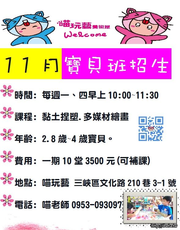 喵玩藝~11月份寶貝班招生(黏土捏塑.多媒材繪畫)