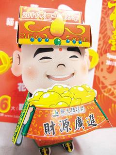 北市12個旅遊服務中心除夕起發送免費限量的「財神爺」紙雕公仔,民眾發現公仔濃濃眉毛就像台北市長郝龍斌。(記者黃驛淵/攝影)