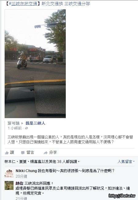 剛剛開車過去也有看到一位年輕人擋住公車.....