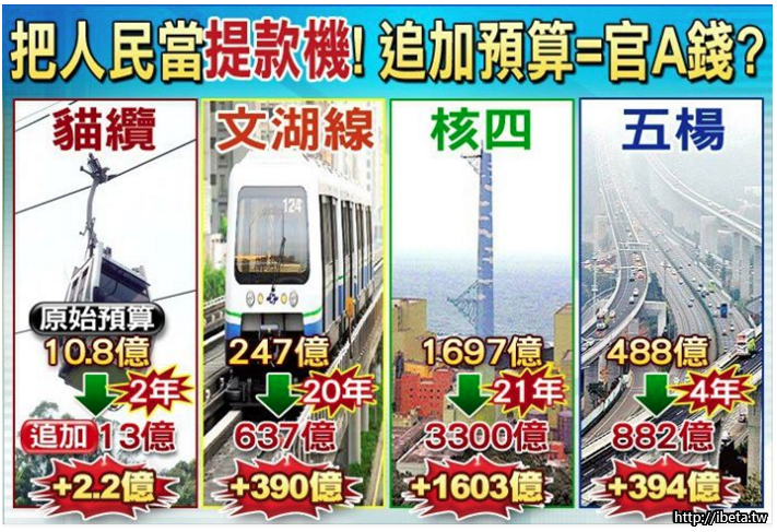 核四,貓纜,柵湖線,五楊高架怎麼會要一而再,再而三的追加預算呢?