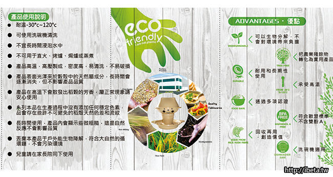 稻殼材質可被大自然分解,對環境無汙染