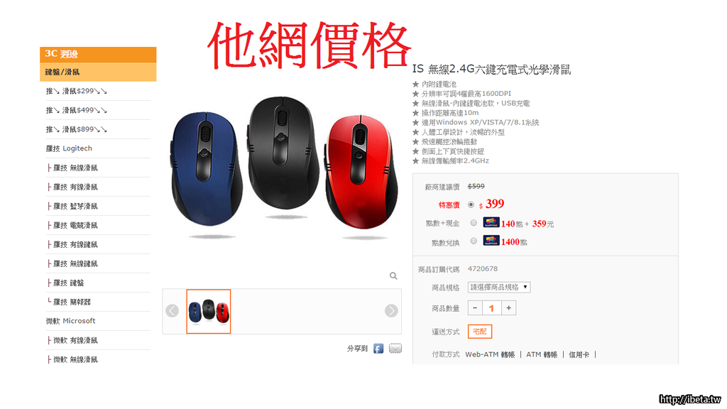 他網價格399元(只有單一個滑鼠)