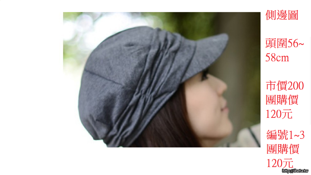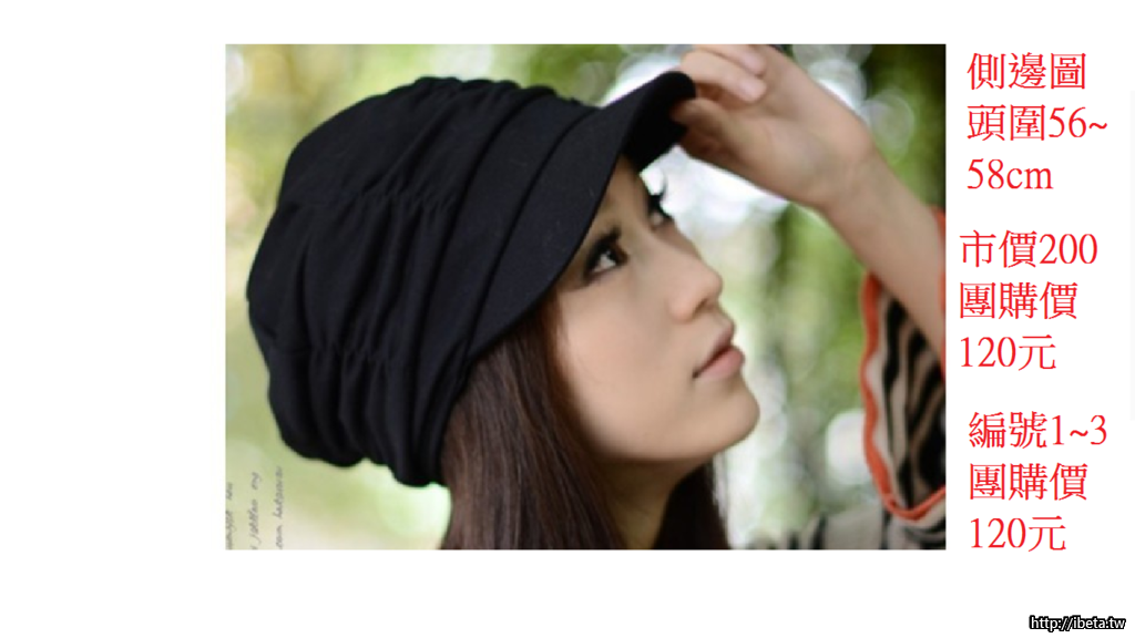 (一)明星款鴨舌帽編號1~3號 市價199團購價120元