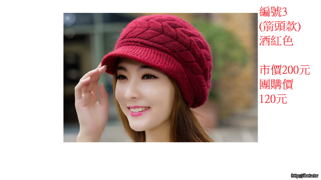 (一)冬季加厚加絨保暖帽 市價200元 團購價120元