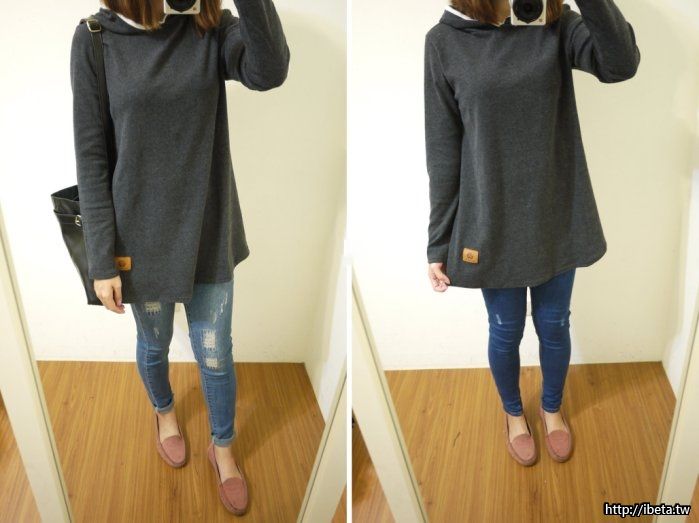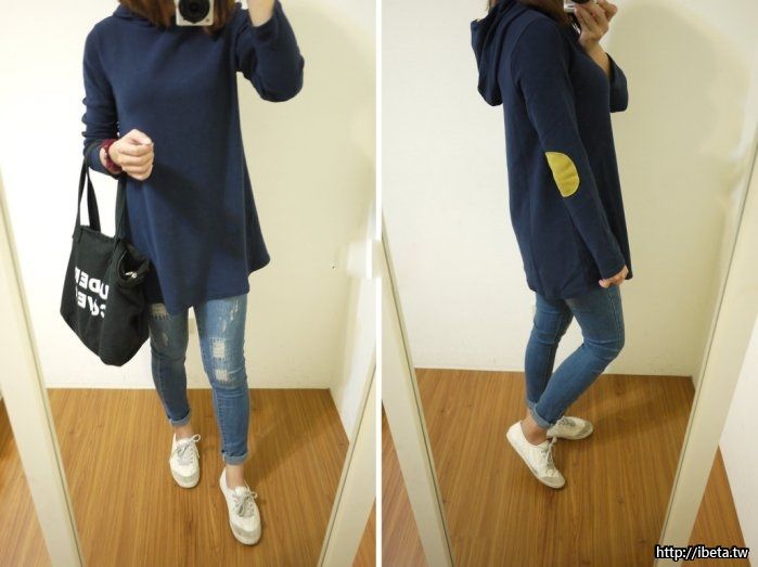 韓製 連帽配色滾邊磨毛棉皮標袖補丁傘擺T.4色