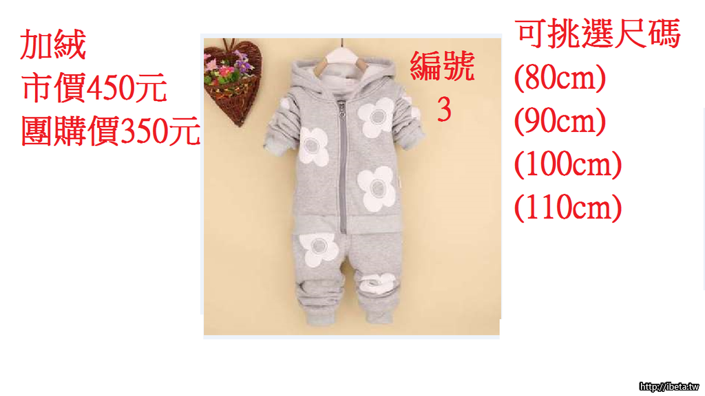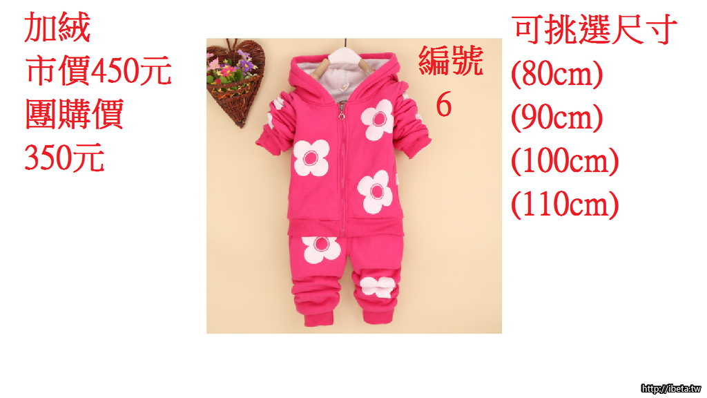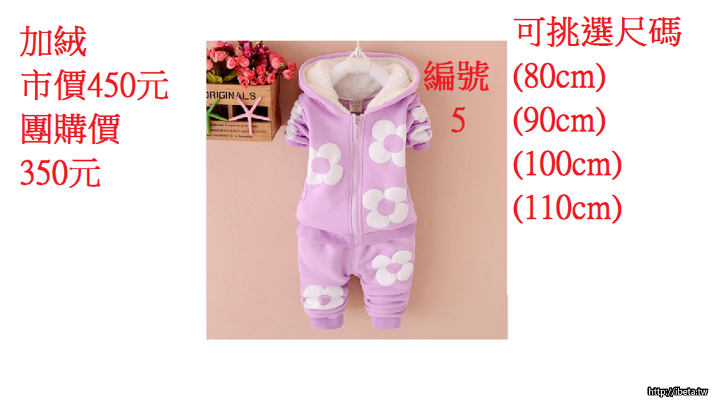 (二)花朵加絨套裝 市價450元 團購價350元