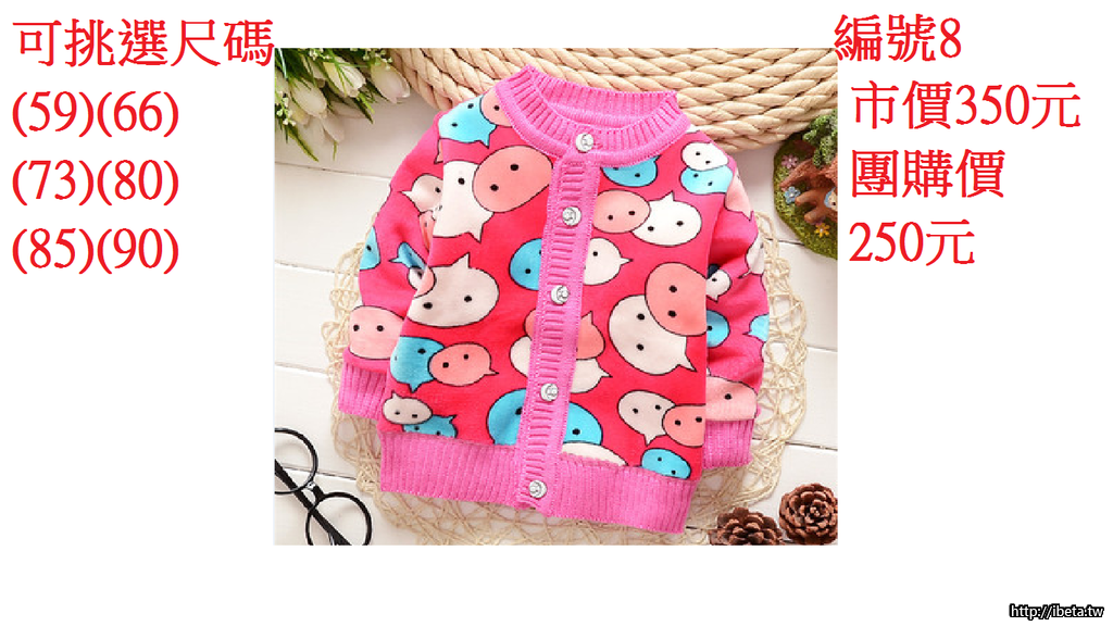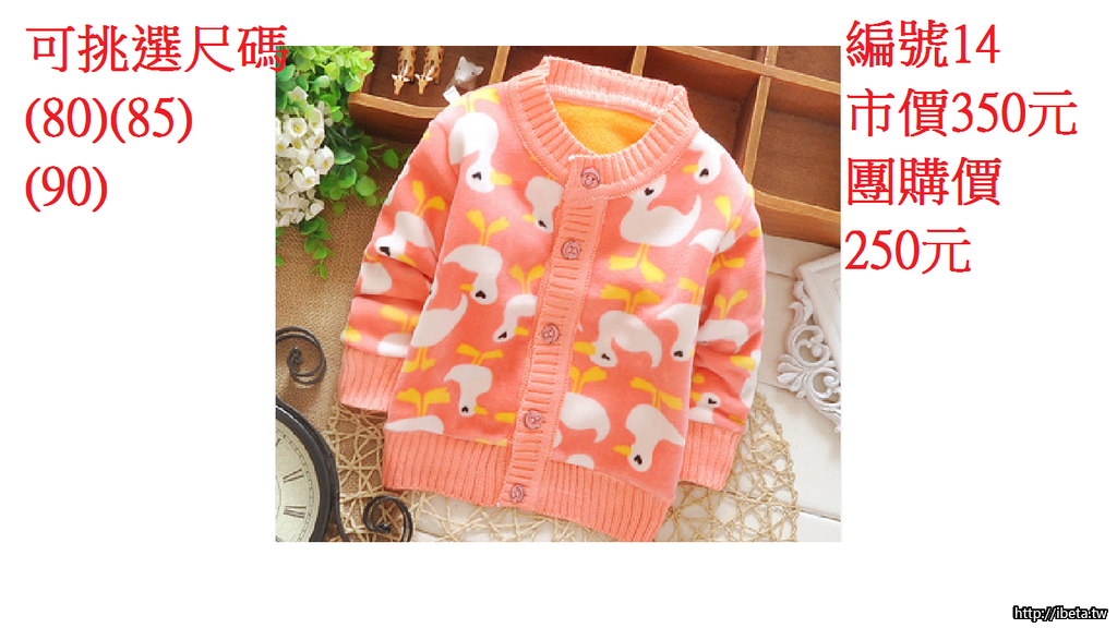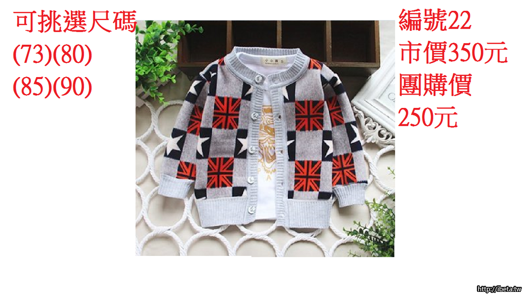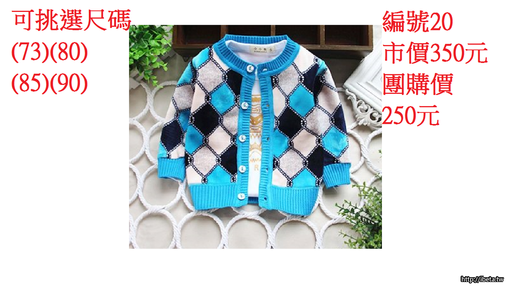 (一)男女加絨針織外套市價350元 團購價250元