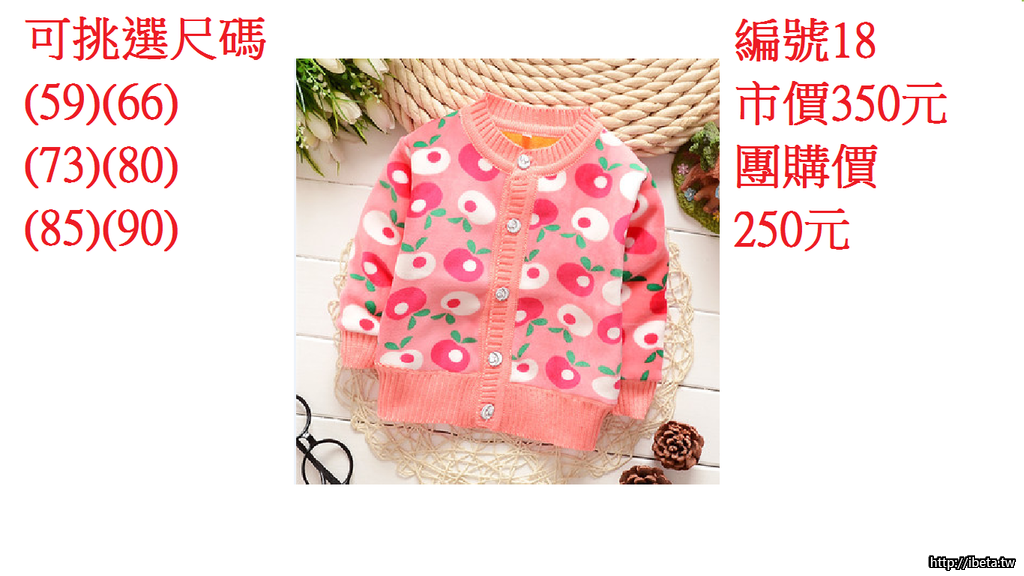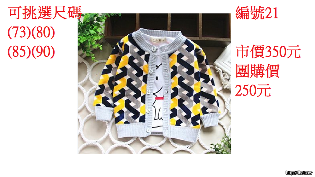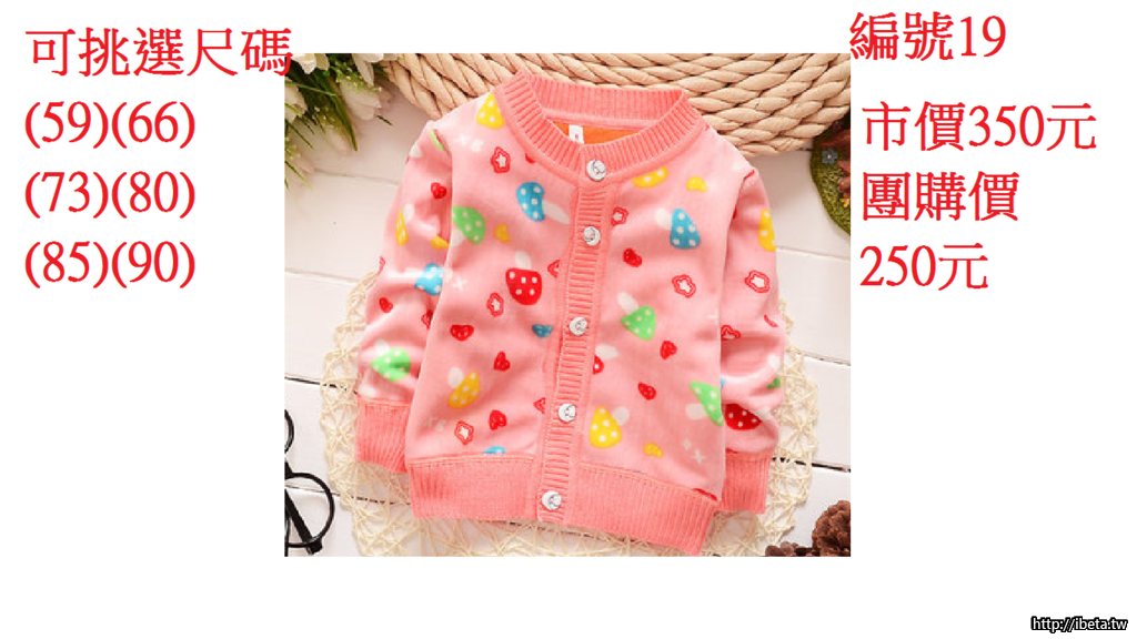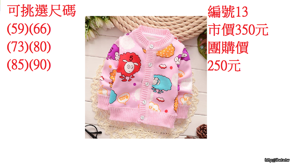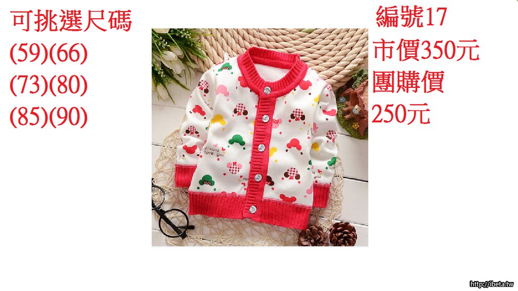 2.請依照編號登記數量即可(因為特價商品廠商很快缺貨請勿耽誤到其他團友優惠)