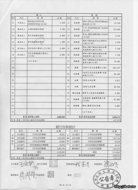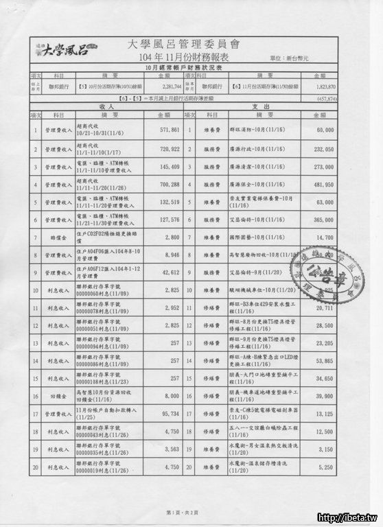 管委會11月份財務報表 [轉自社區雲]