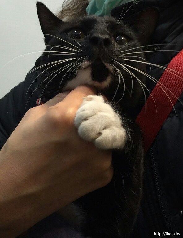 大雅路上撿到一隻黑白貓,有戴紅色項圈