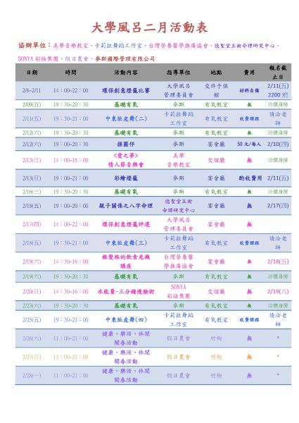 2月活動計畫表公佈了