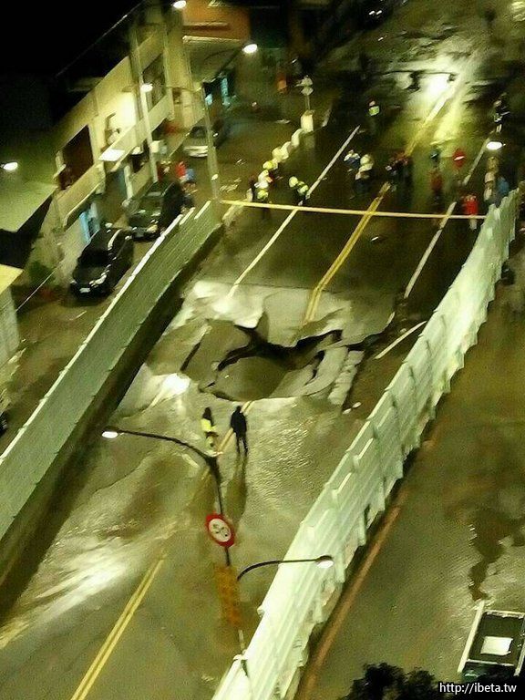 昨(27)日深夜11時40分,新北市樹林區柑園大橋往山佳方向下橋匝道路面下方直徑1350mm自來水水泥管線破裂,大量自來水洩漏,造成橋面塌陷,自來水漫入周邊民宅及車輛,初估影響52戶民宅及14部車輛。