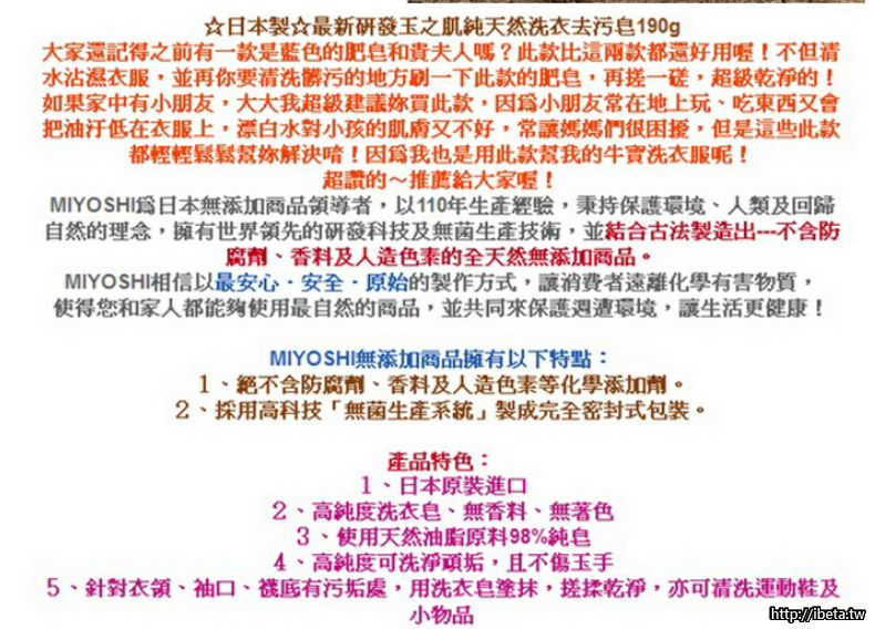 日本製MIYOSHI無添加洗衣去污皂