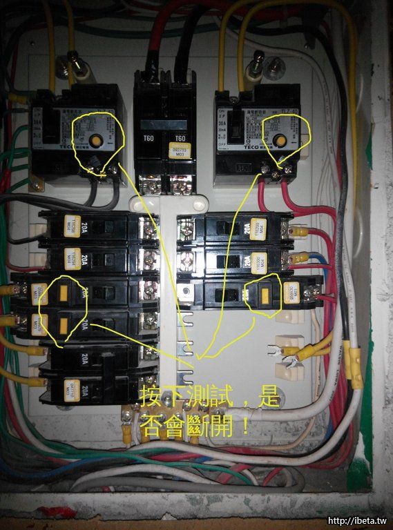 2. 按下測試開關,此時 漏電斷路器 會跳開 (若是不會跳開,就是壞掉了)