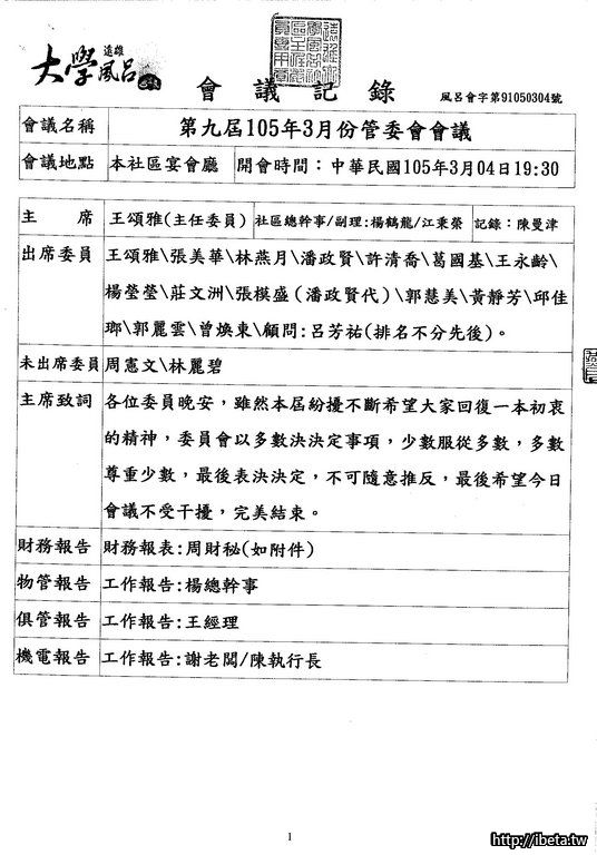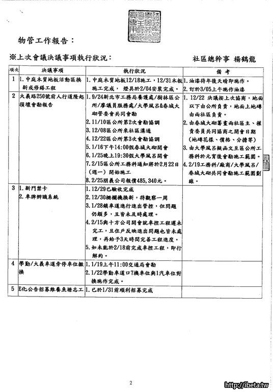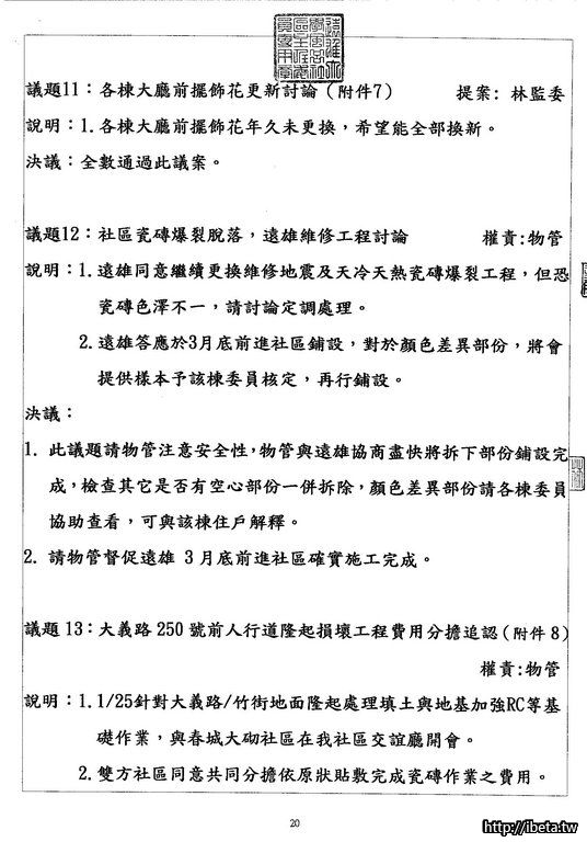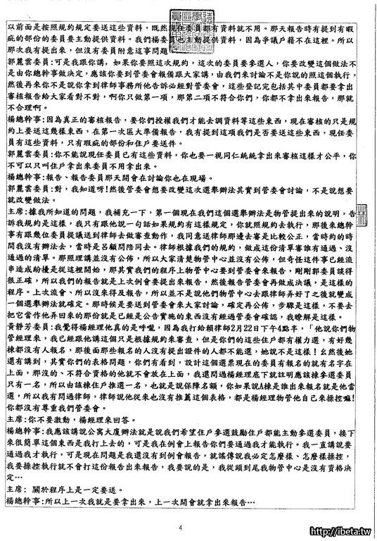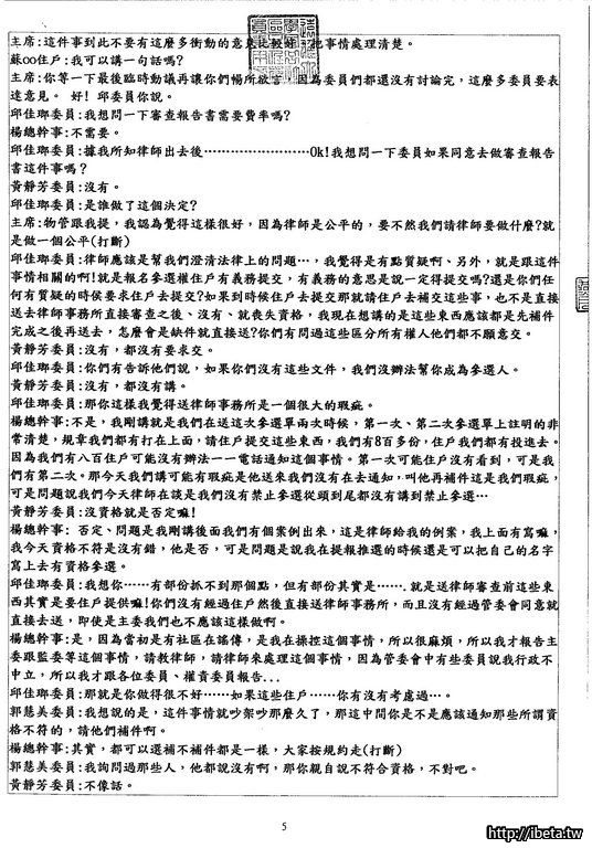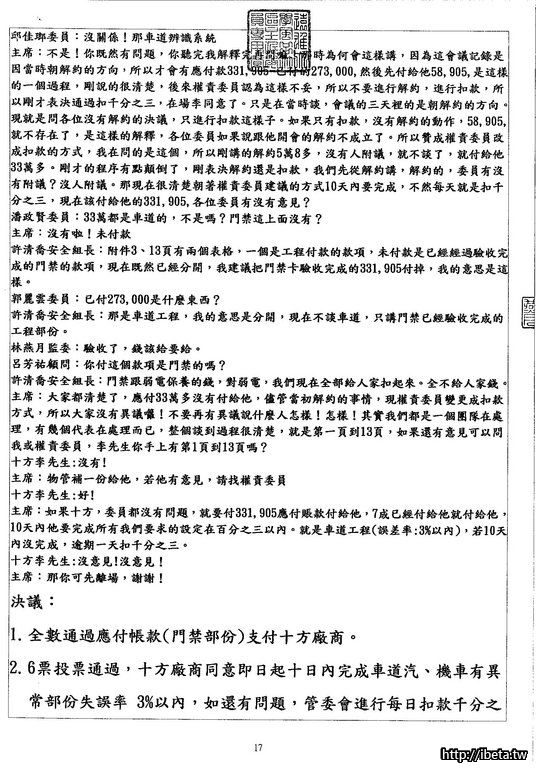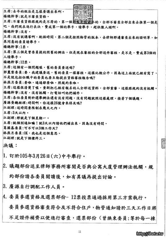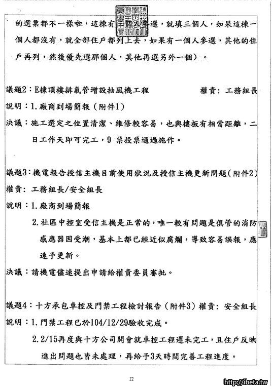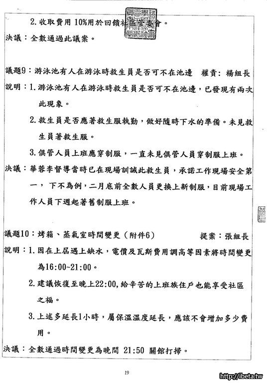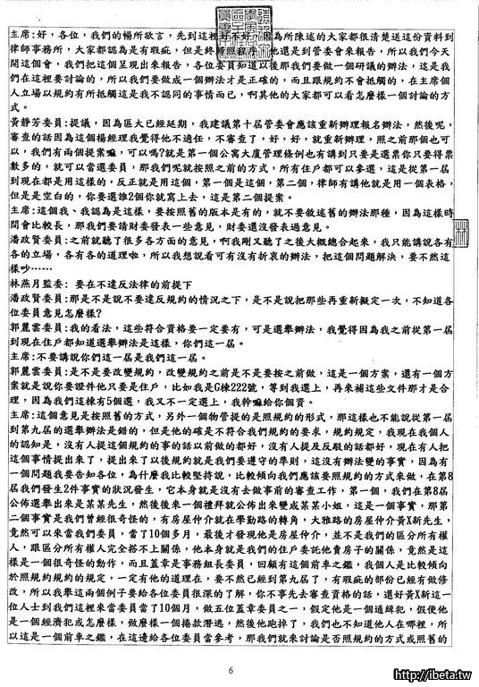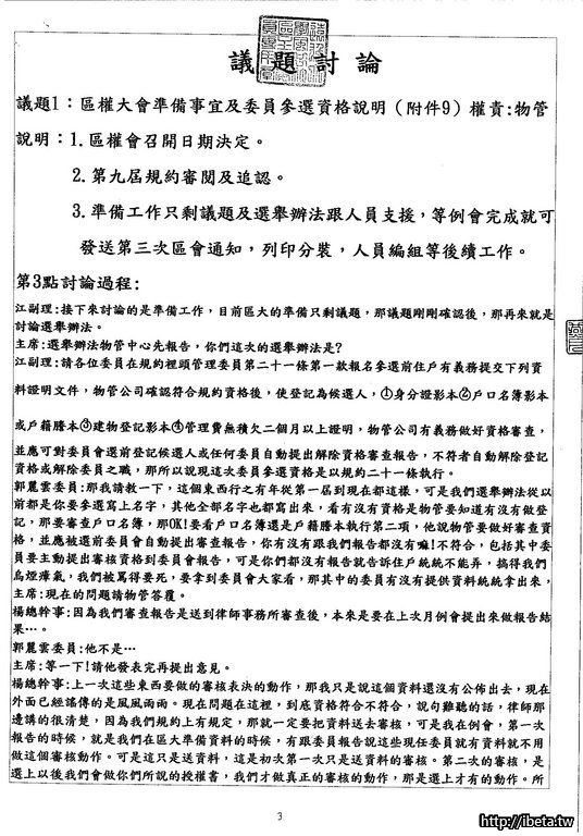 我是認為,既然是公開的開會,沒有道理不公開給所有住戶,也並不是每個住戶都有空開會時出席。