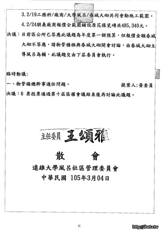建議您可以在區大討論規約修正的時候提出來,糾正管委會的疏失。也讓此提案進入表決。
