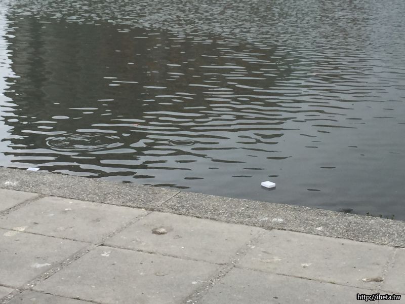 餵完魚後,魚飼料空盒隨手扔進湖中;小朋友原本要去撿,
