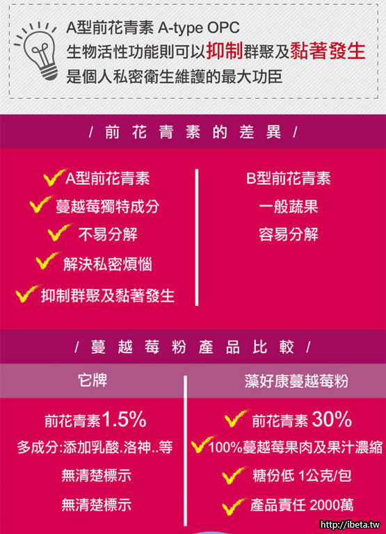 ● 含30%前花青素解決私密煩惱