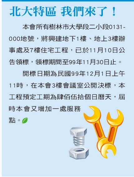 樹林農會來電說確定不會有超市引入,就是純金融部、辦公室跟住宅,有點小失望,但也沒辦法...