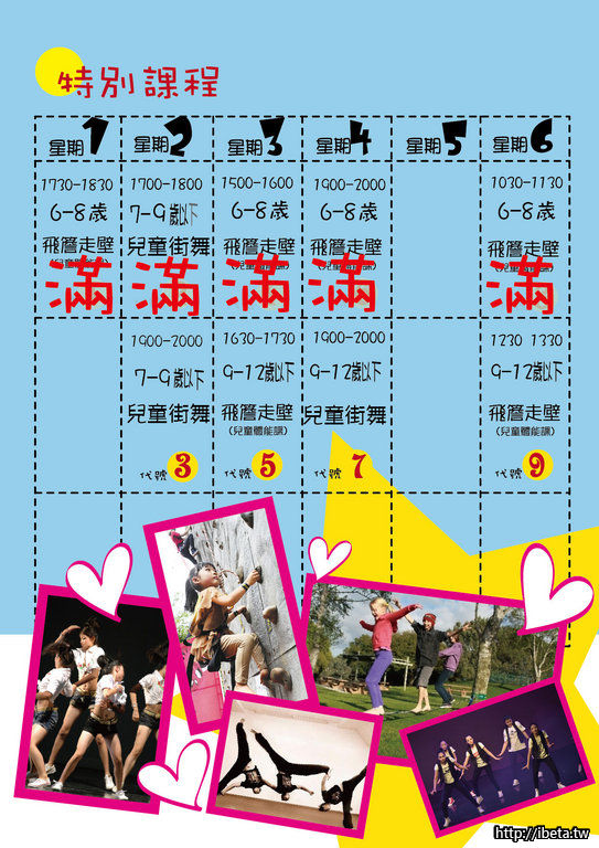 *特別課程<飛簷走壁>及<兒童街舞>仍有部份名額﹙可接受報名﹚