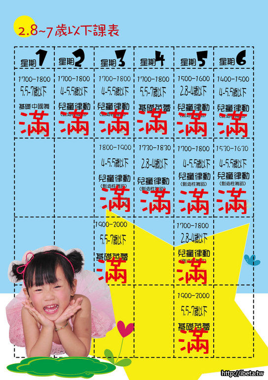 目前2.8~7歲以下小朋友課程全部額滿