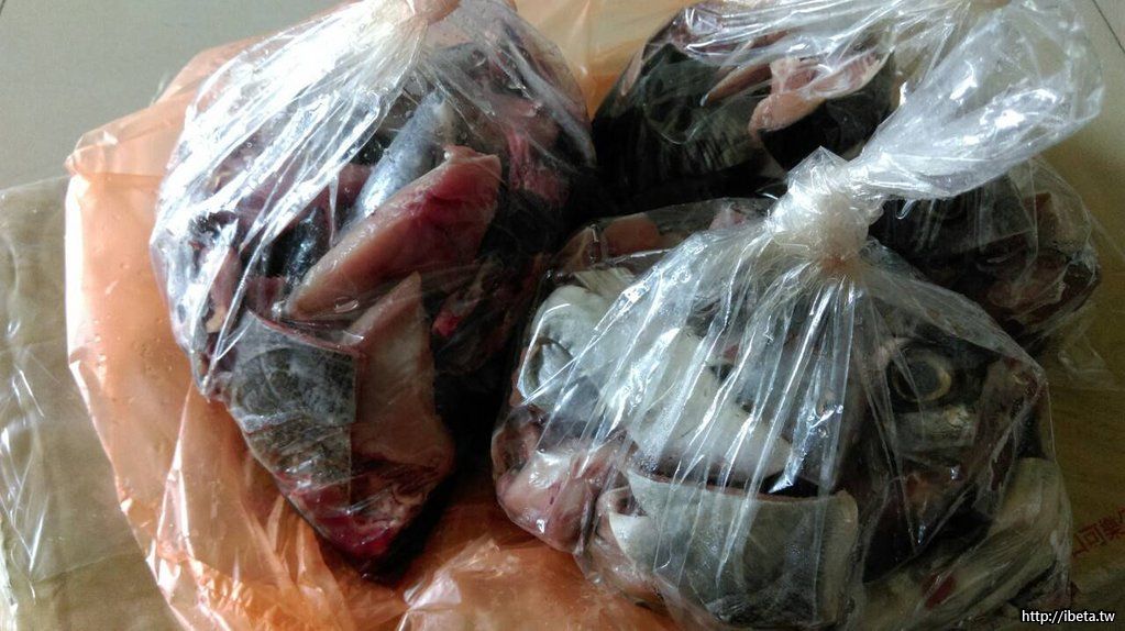 已切塊好了,ㄧ包的份量可分2次煮,雖說是魚頭,但還真是很多肉呢,直接煮薑絲魚湯或味磳魚湯(湯)就很鮮美,或是煮火鍋也很棒喔。